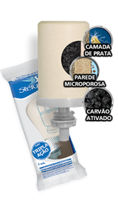 Triple acción – Declorante y esterilizante, posee revestimiento de plata coloidal aplicado en la parte interna de la vela, junto con el carbón activado, trabajando para filtrar y reducir olores, sabores y cloro, además de reducir la presencia de bacterias en el agua. La capa de plata coloidal aplicada internamente penetra por los poros de la vela, preservando su propiedad esterilizante.